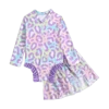 Motorcycle Graphic Letter Print Color Blocking Long Sleeve Crop Jacket Top + Stylish Faux Leather Mini SkirtStyle: Everyday CasualDetails: Button, PleatedNeckline: CollarOuterwear Sleeve Length: Long SleeveSleeve Type: Regular SleeveFit Type: Regular FitSkirts Length: Short In Inches Skirts Size Length Waist Size 4Y 11.8 25.2-17.7 5Y 12.6 26.4-18.5 6Y 13.4 27.6-19.3 7Y 14.2 28.7-20.1...