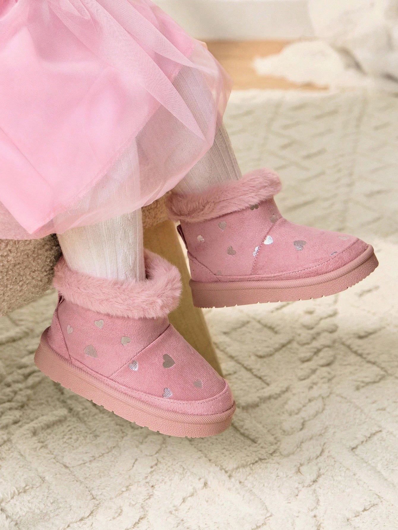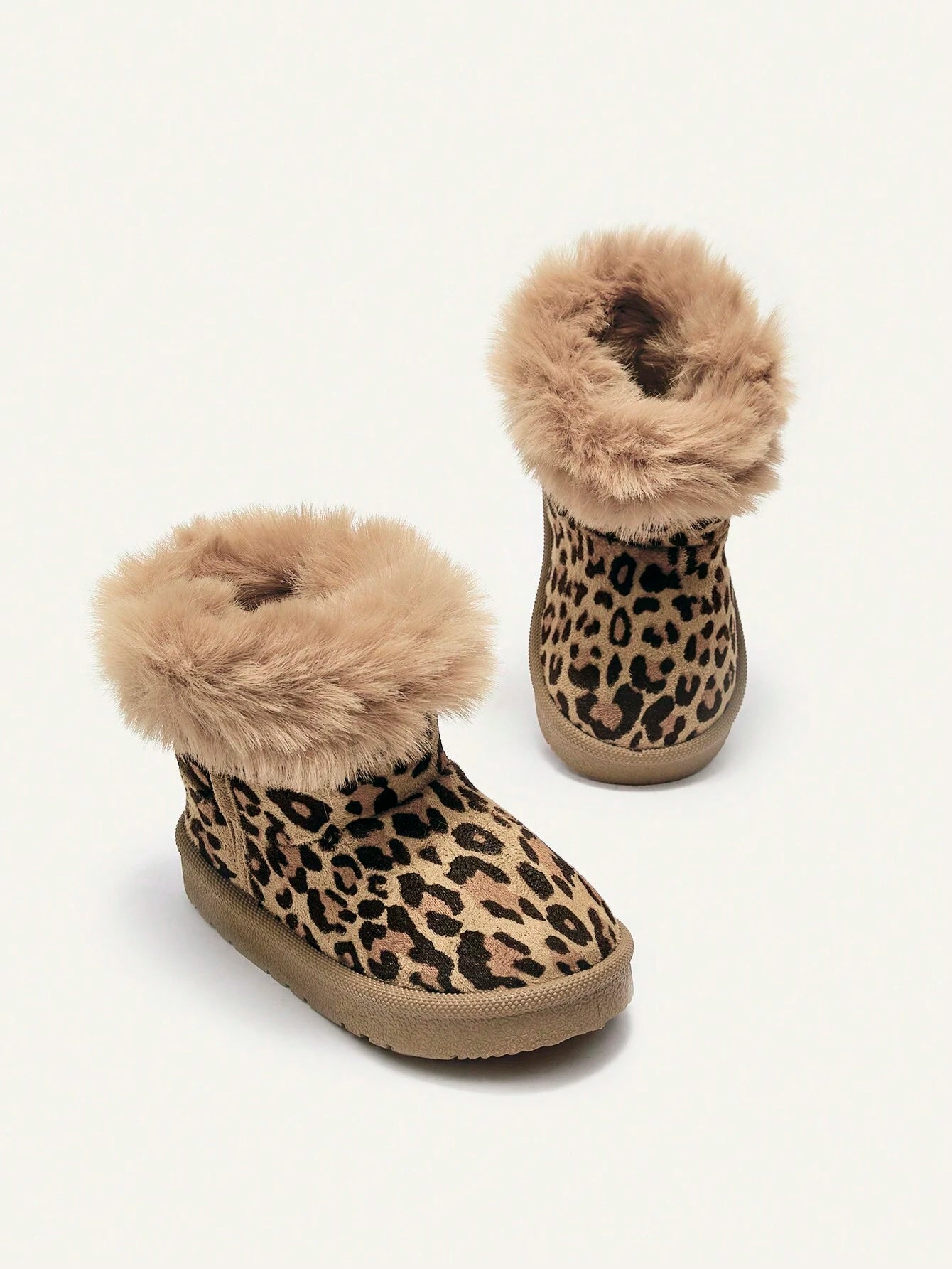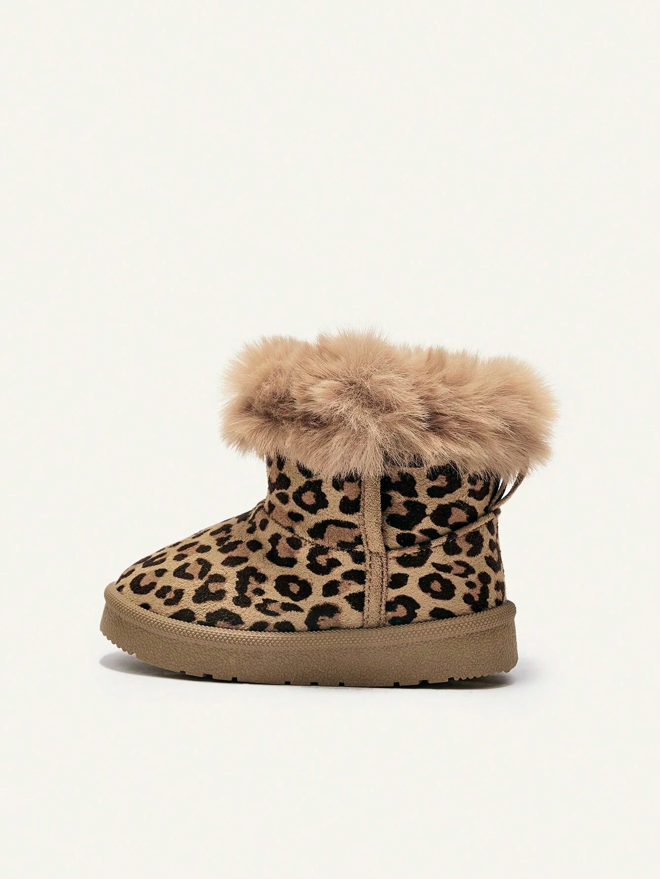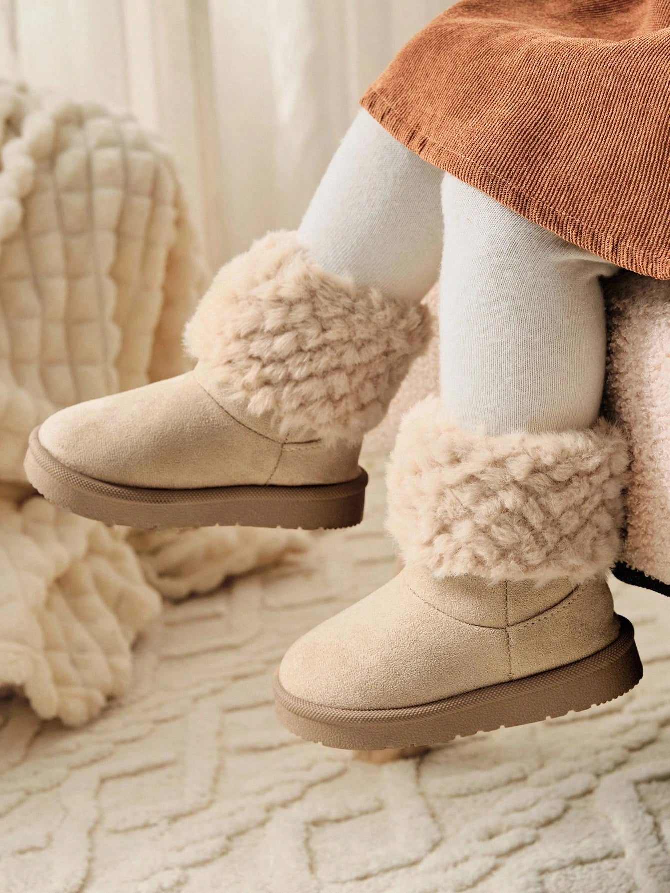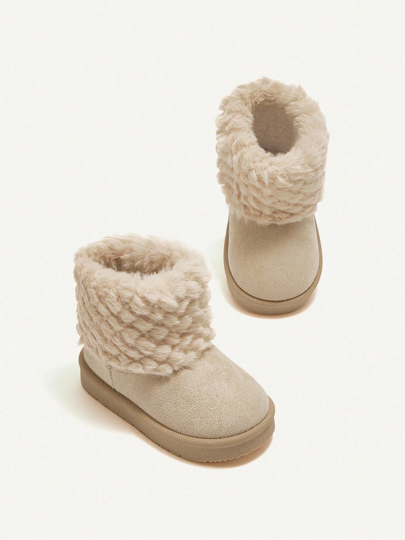 1 Pair Baby Girls' Beige Faux Fur Flat Comfortable Warm Lined High-Top Boots