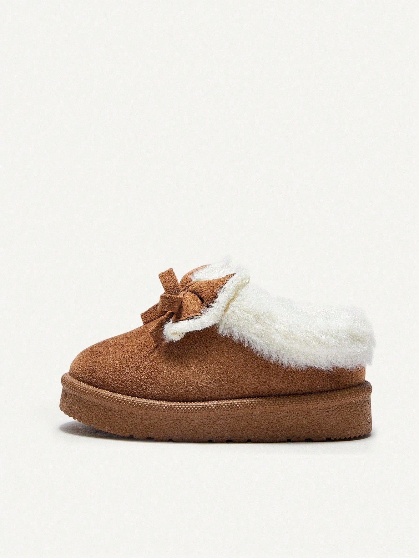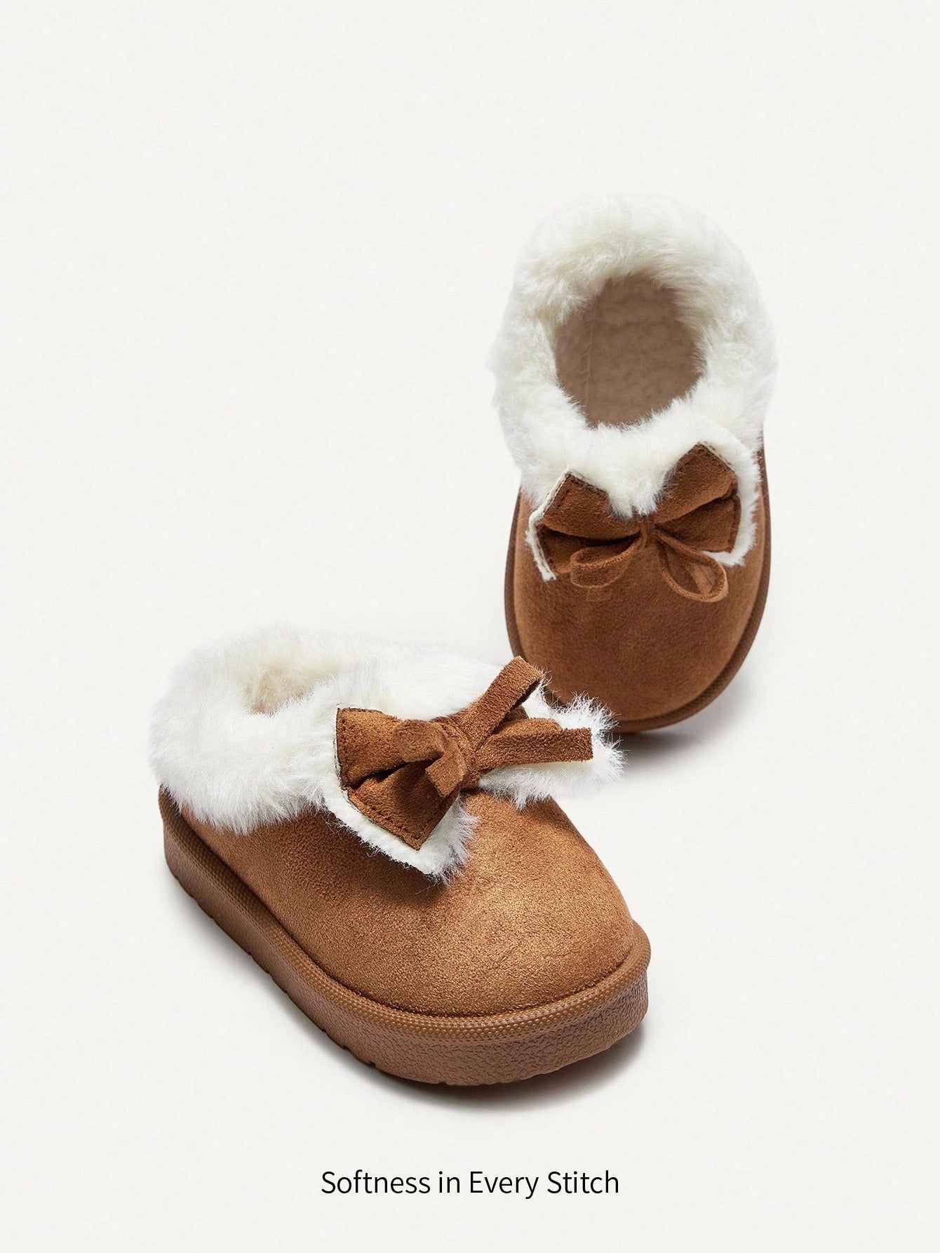 1 Pair Toddler Girls' Bow Decor Camel Color Fashion Warm Lined Winter Slippers