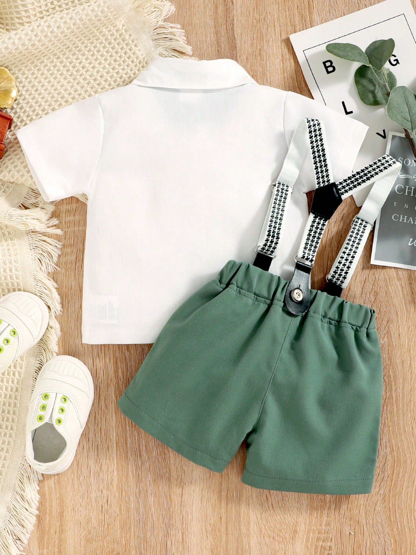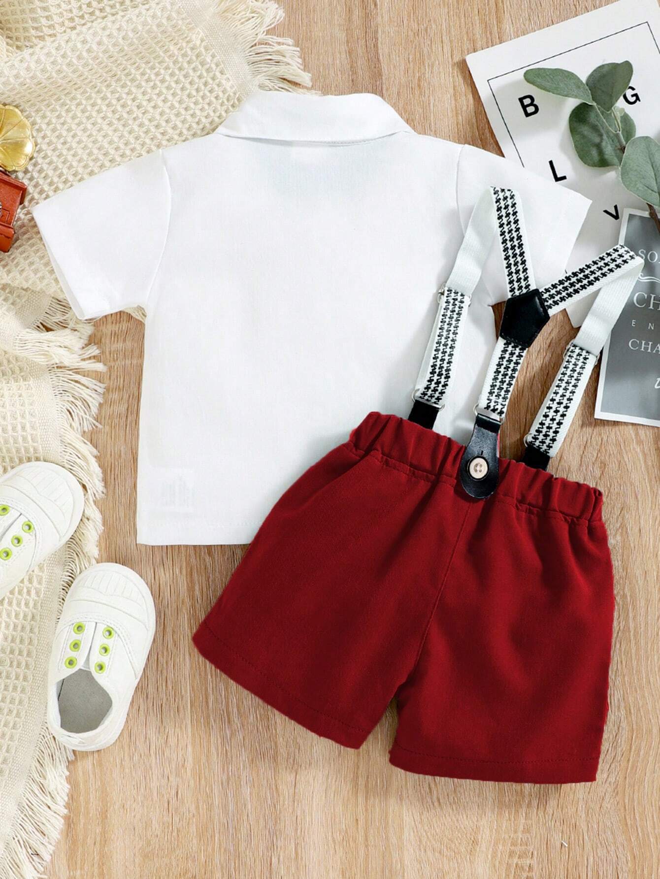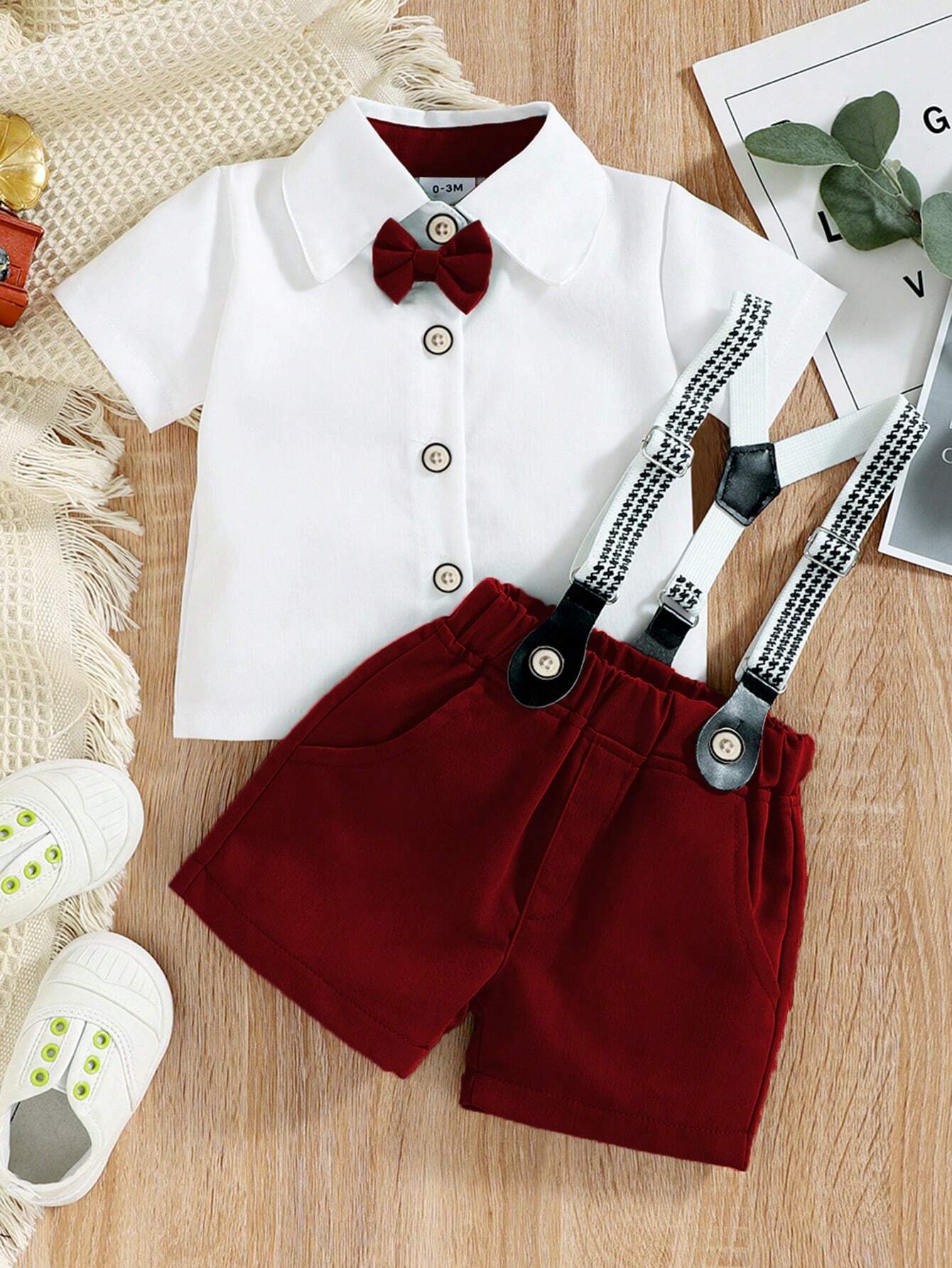 Baby Boy Bow Front Shirt & Suspender Shorts
