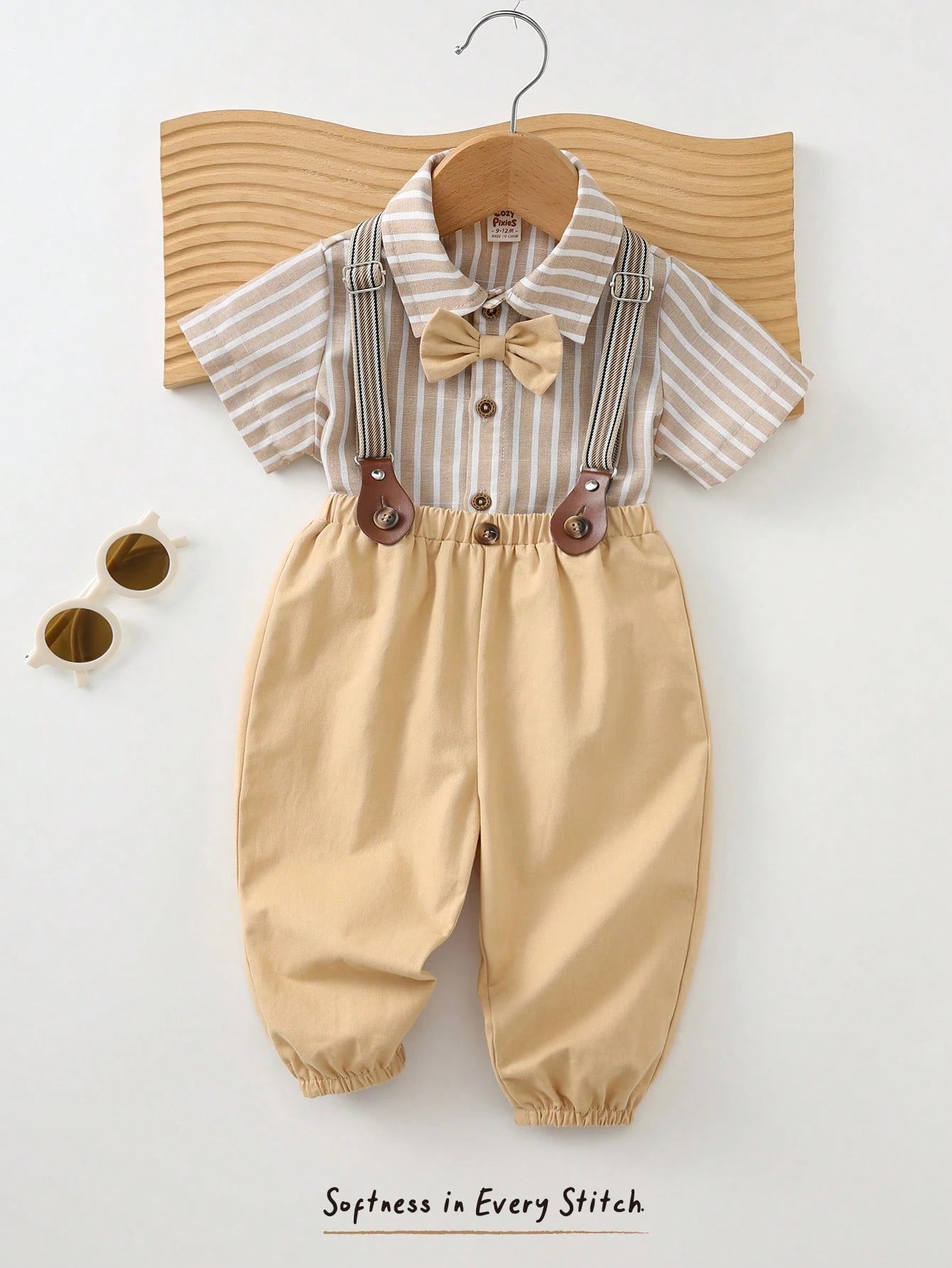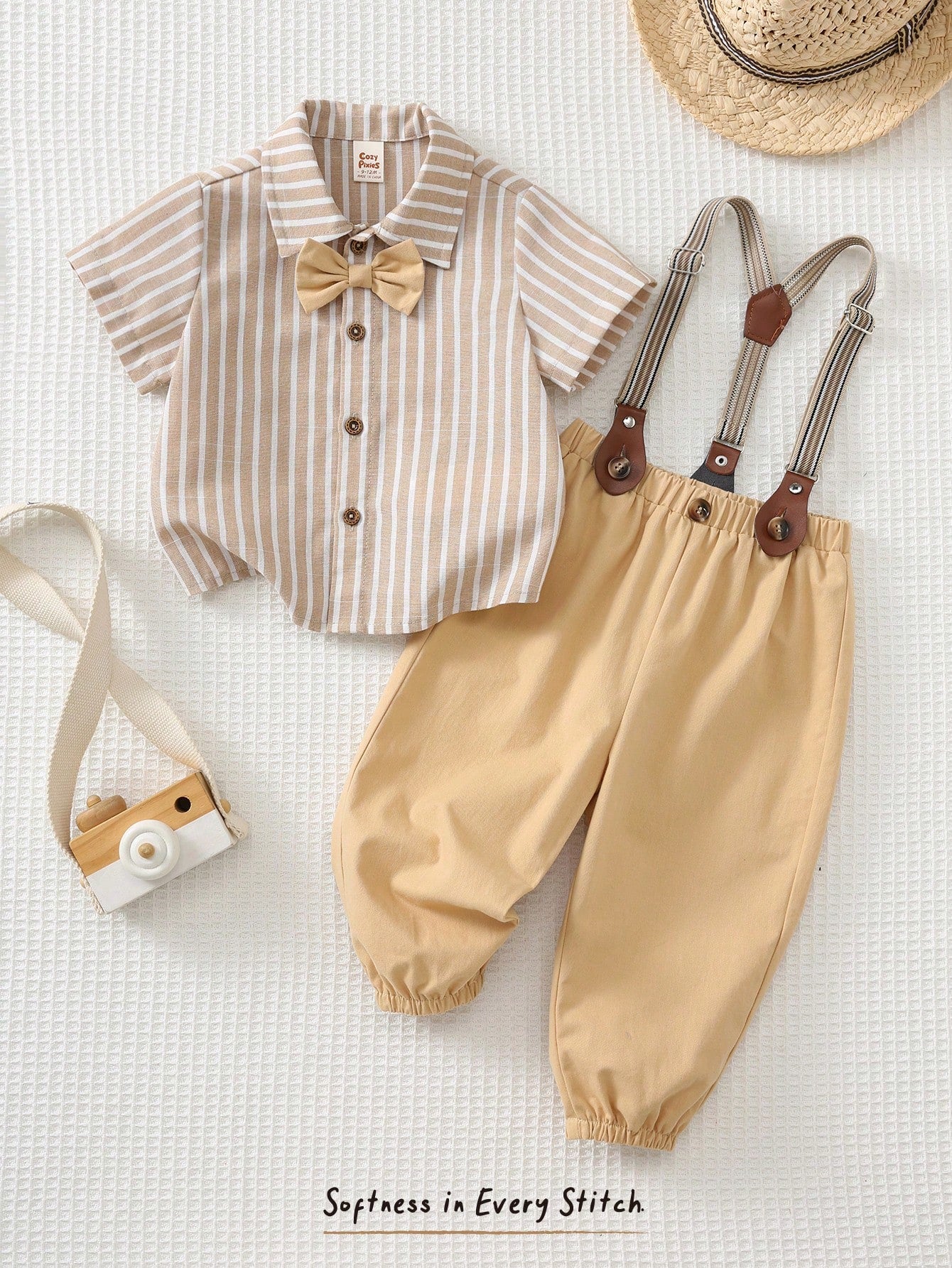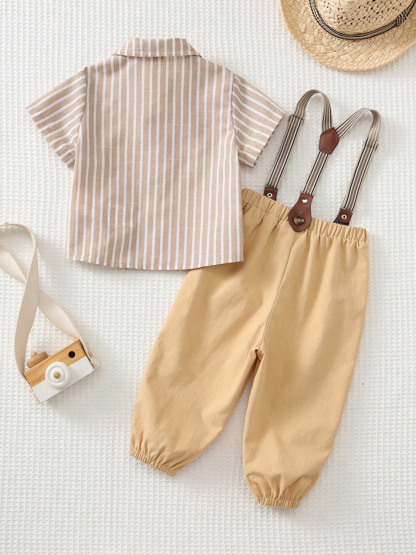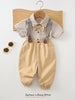 Baby Boy Colorful Striped Lapel Short Sleeve Cardigan Shirt And Bib Pants Set
