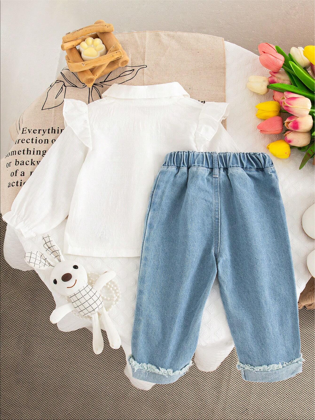 Baby Girls' Simple Star Embroidery Shirt And Jeans Set