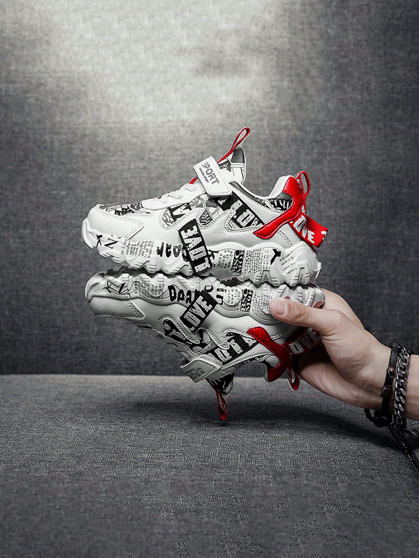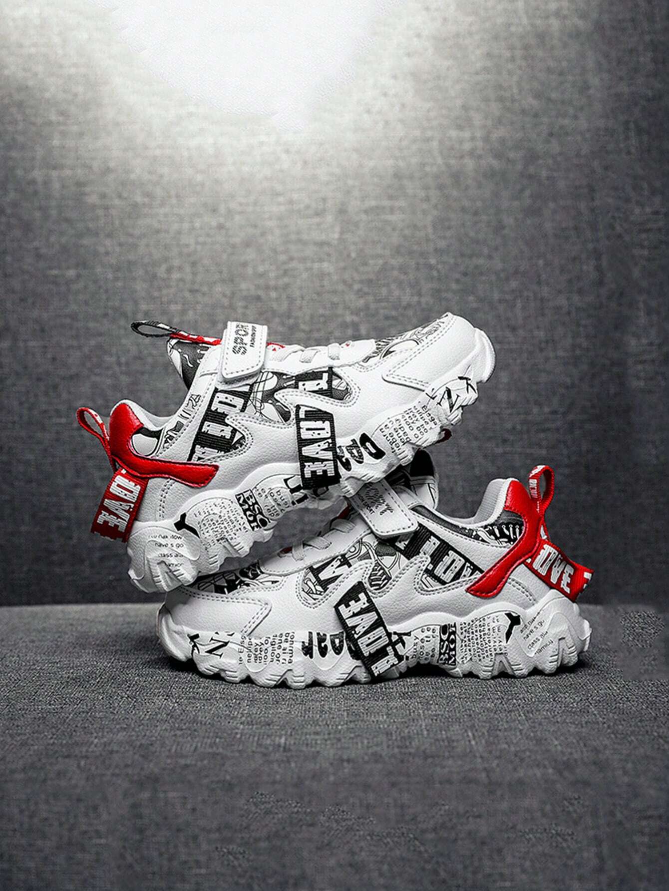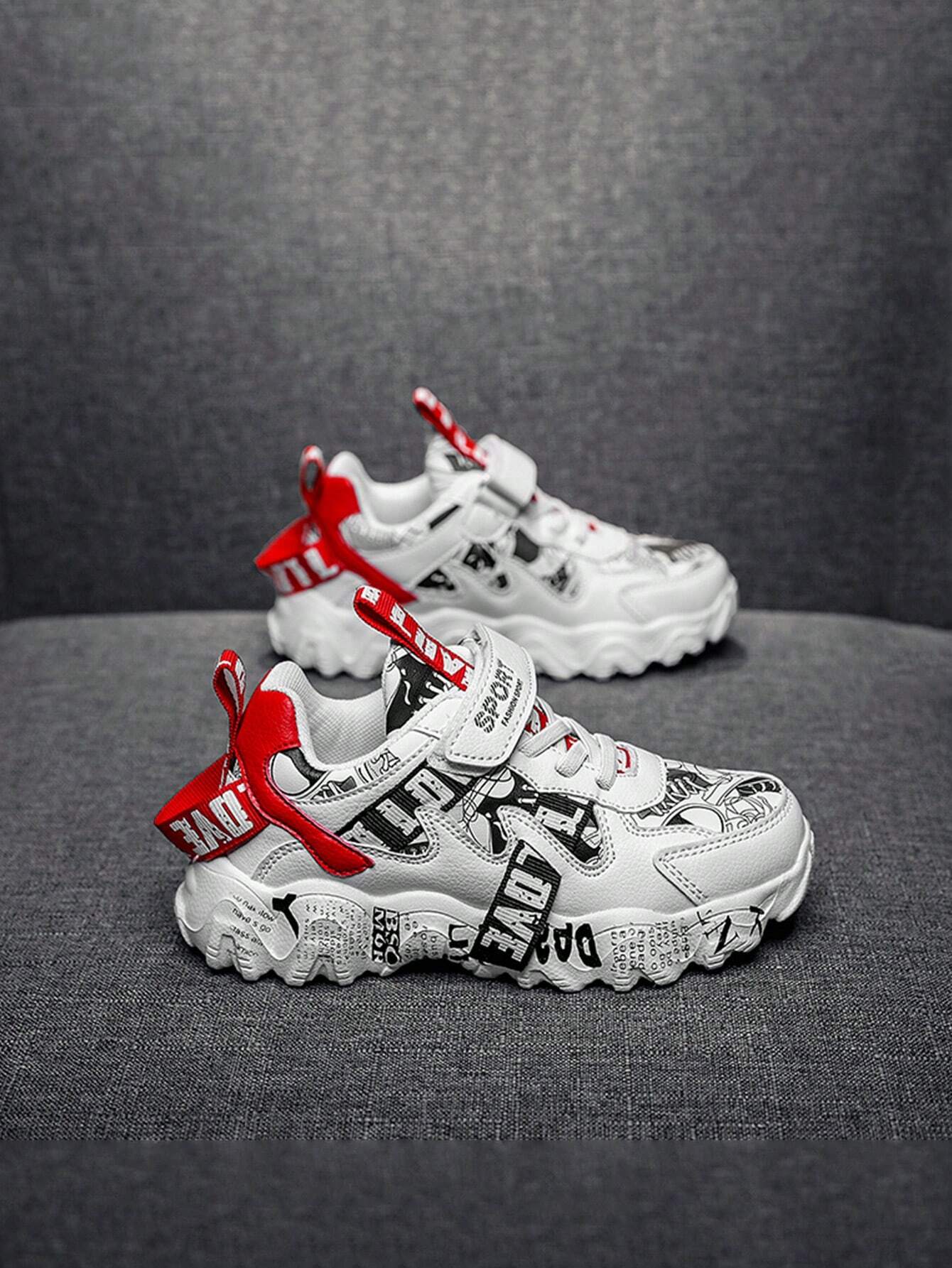 Children Sports Shoes, Fashion Print Leather Surface Breathable