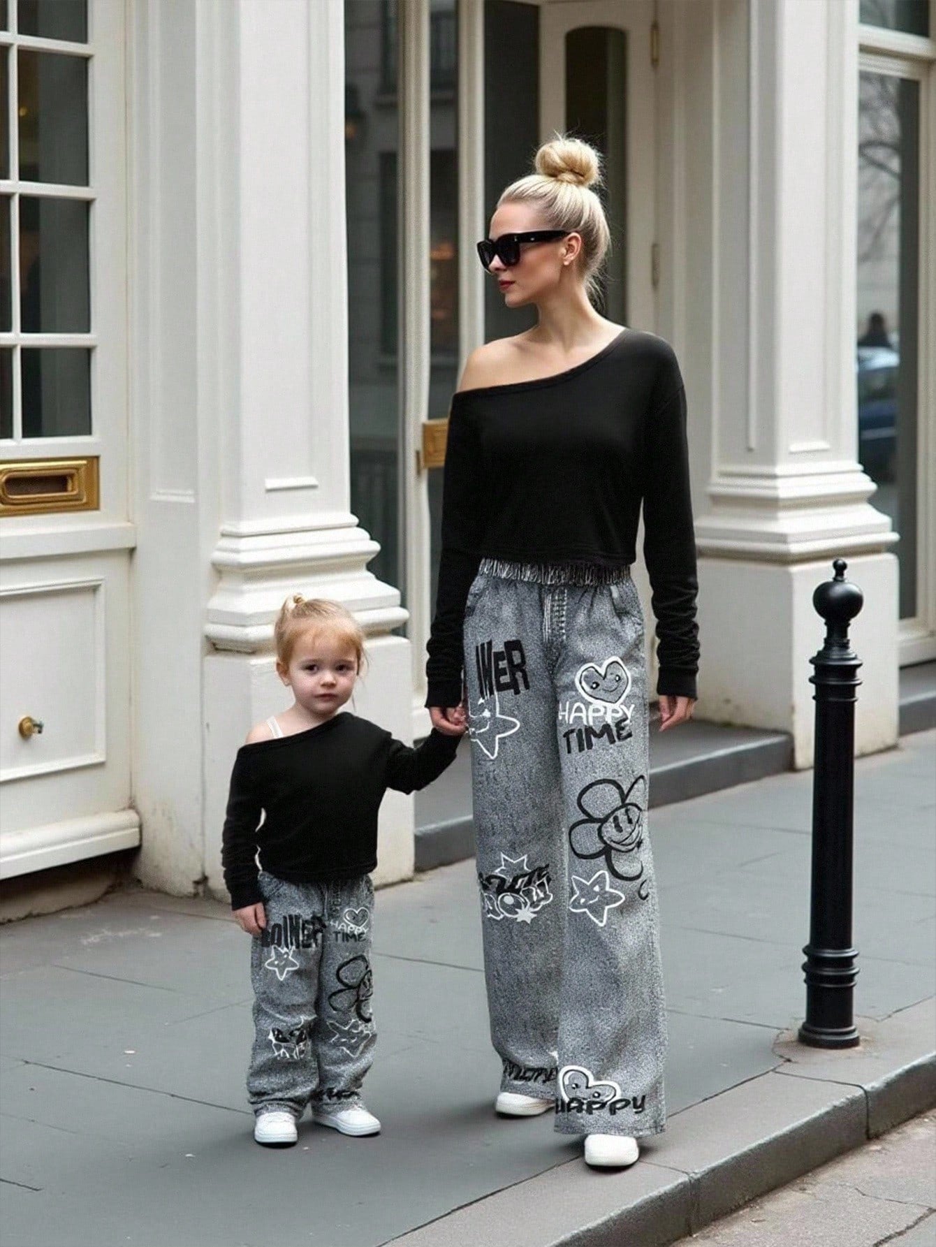 Fashion Oblique Shoulder Long Sleeve Sweatshirt And Pants