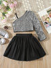 Details: Asymmetrical, Contrast Sequin, Pleated