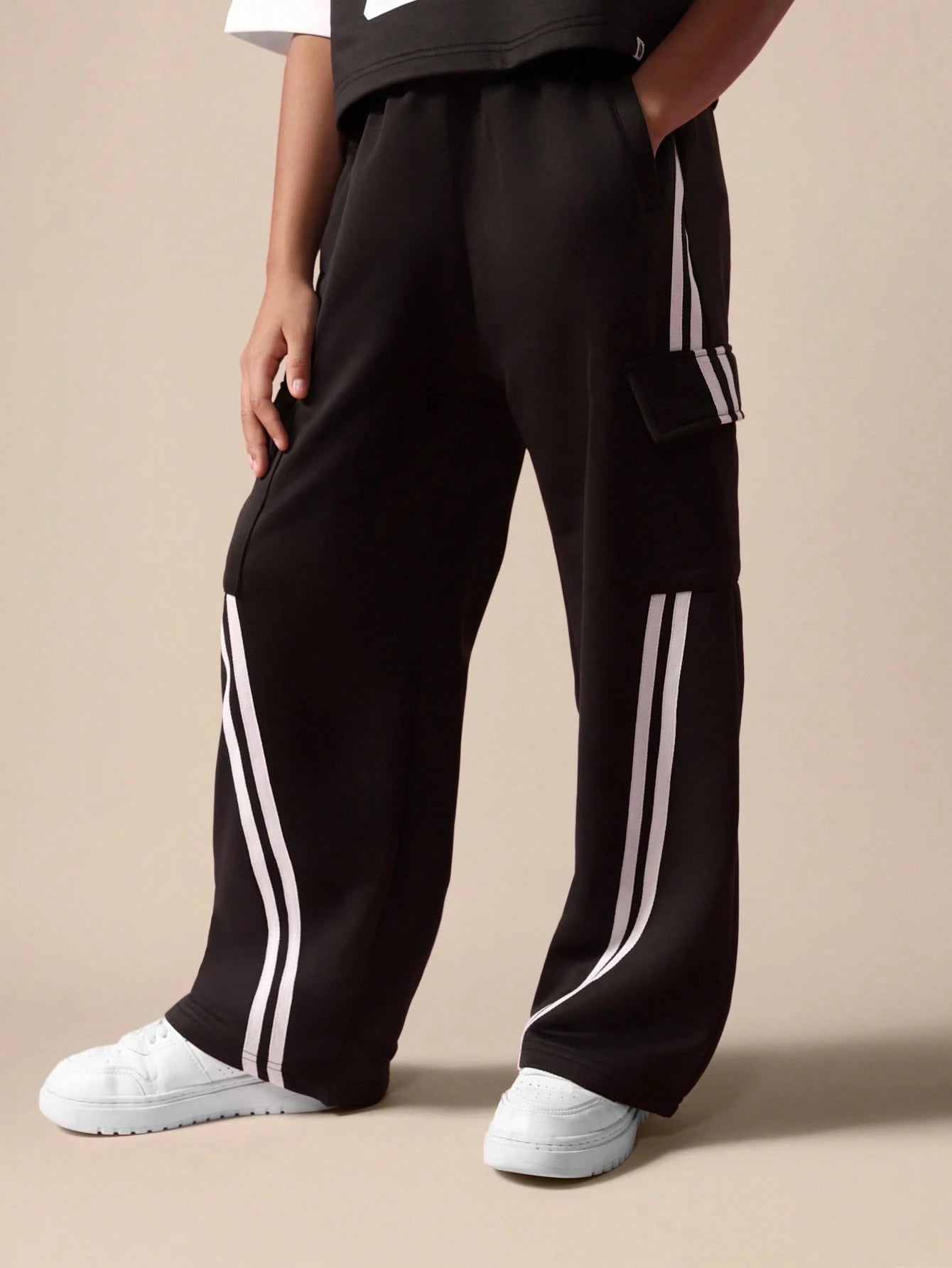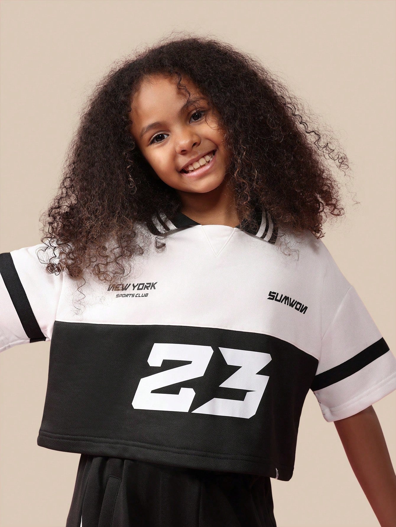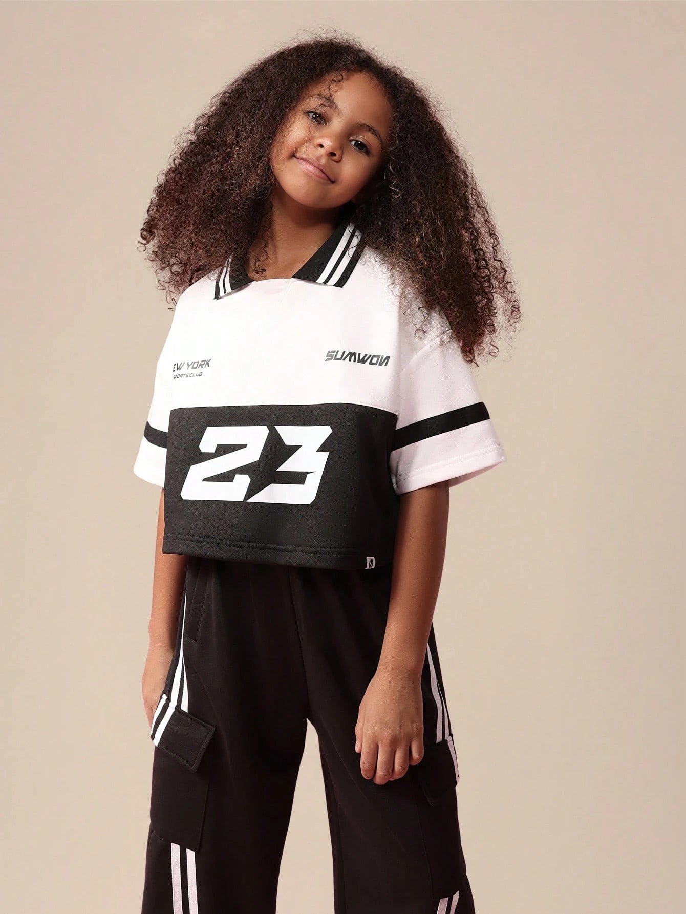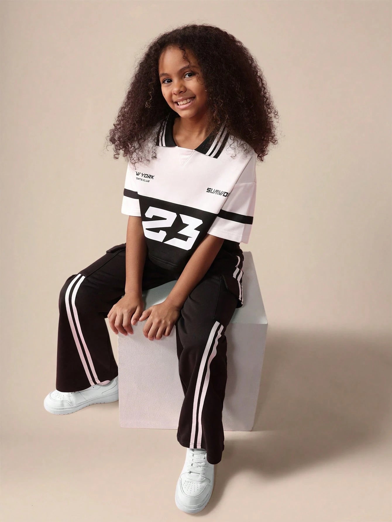 Oversized Block Print Co-Ord Set Sports Jersey Top Wide Leg Cargo Pants