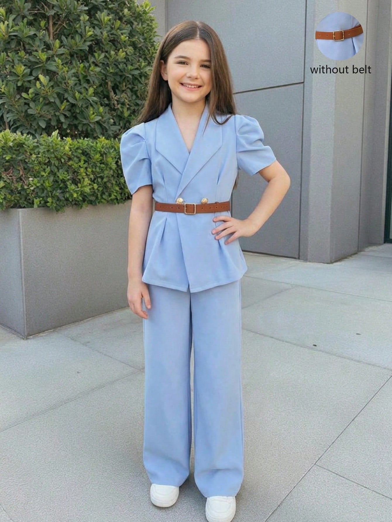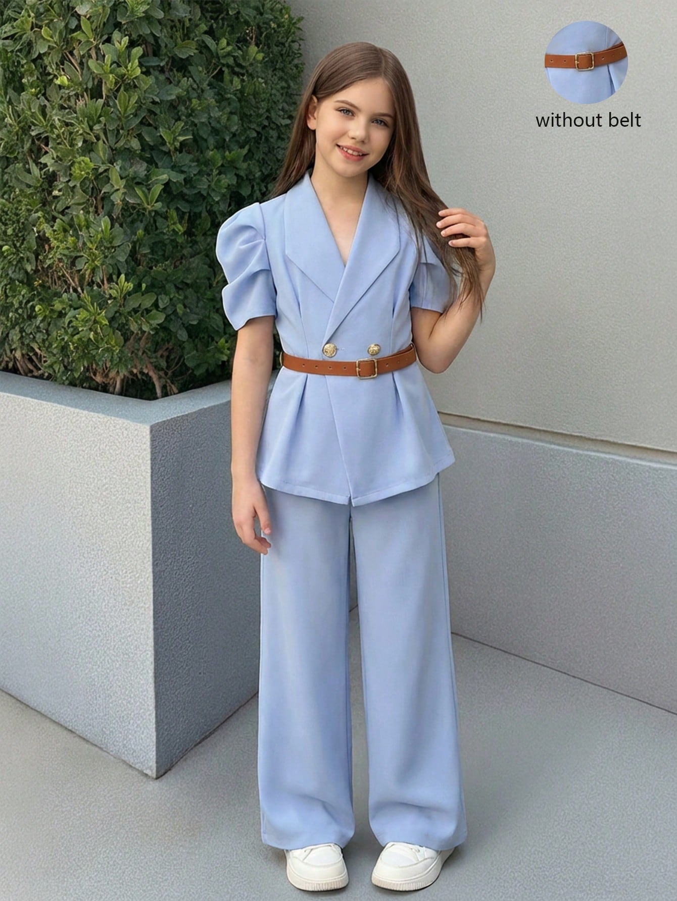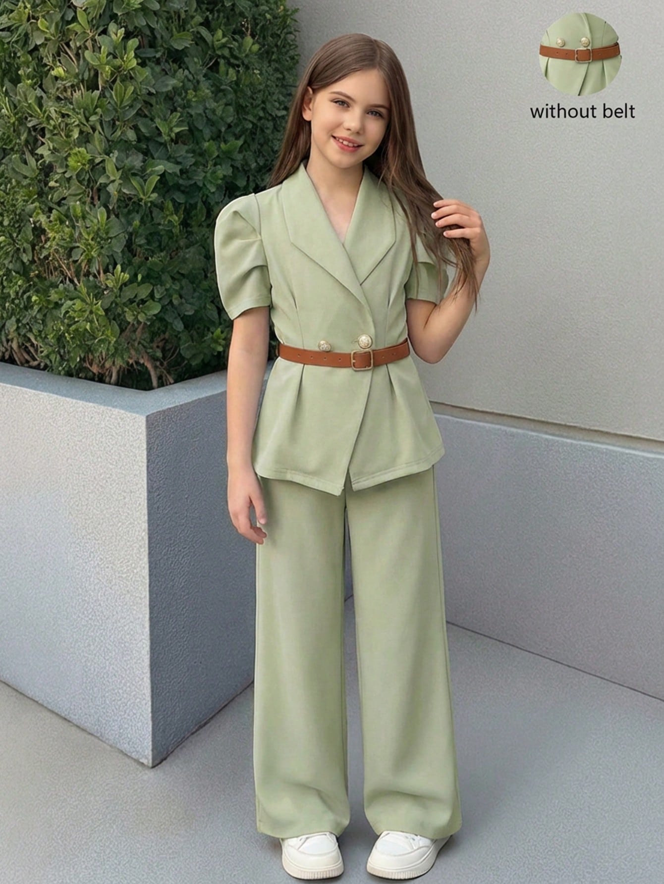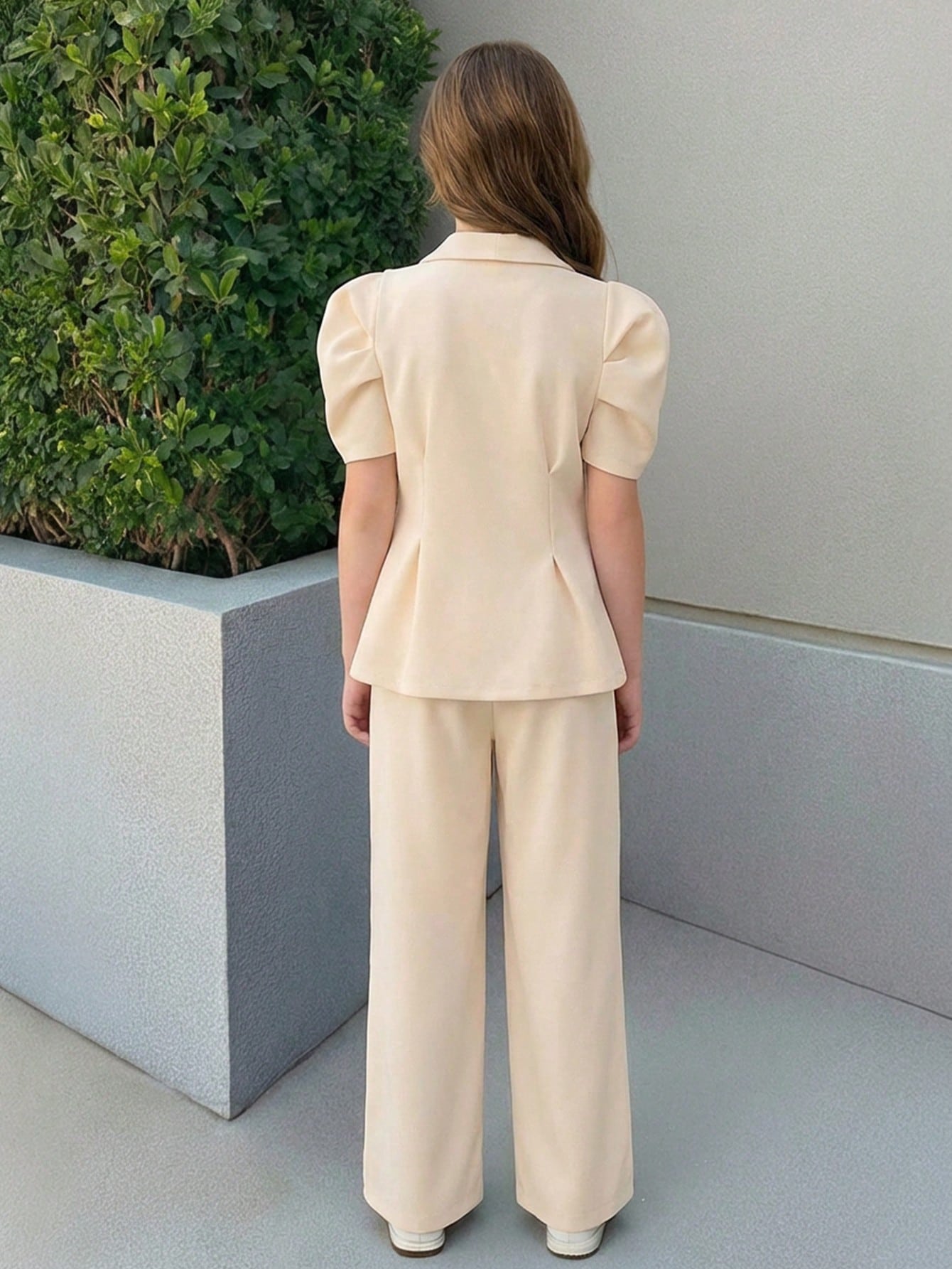 Tween Girl 2 Pieces Set Black Vintage Flared Sleeve Fitted Blazer & Straight Leg Pants