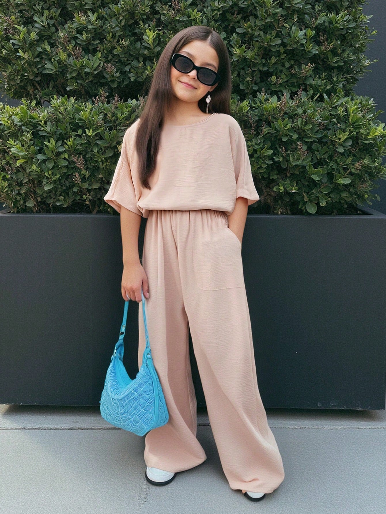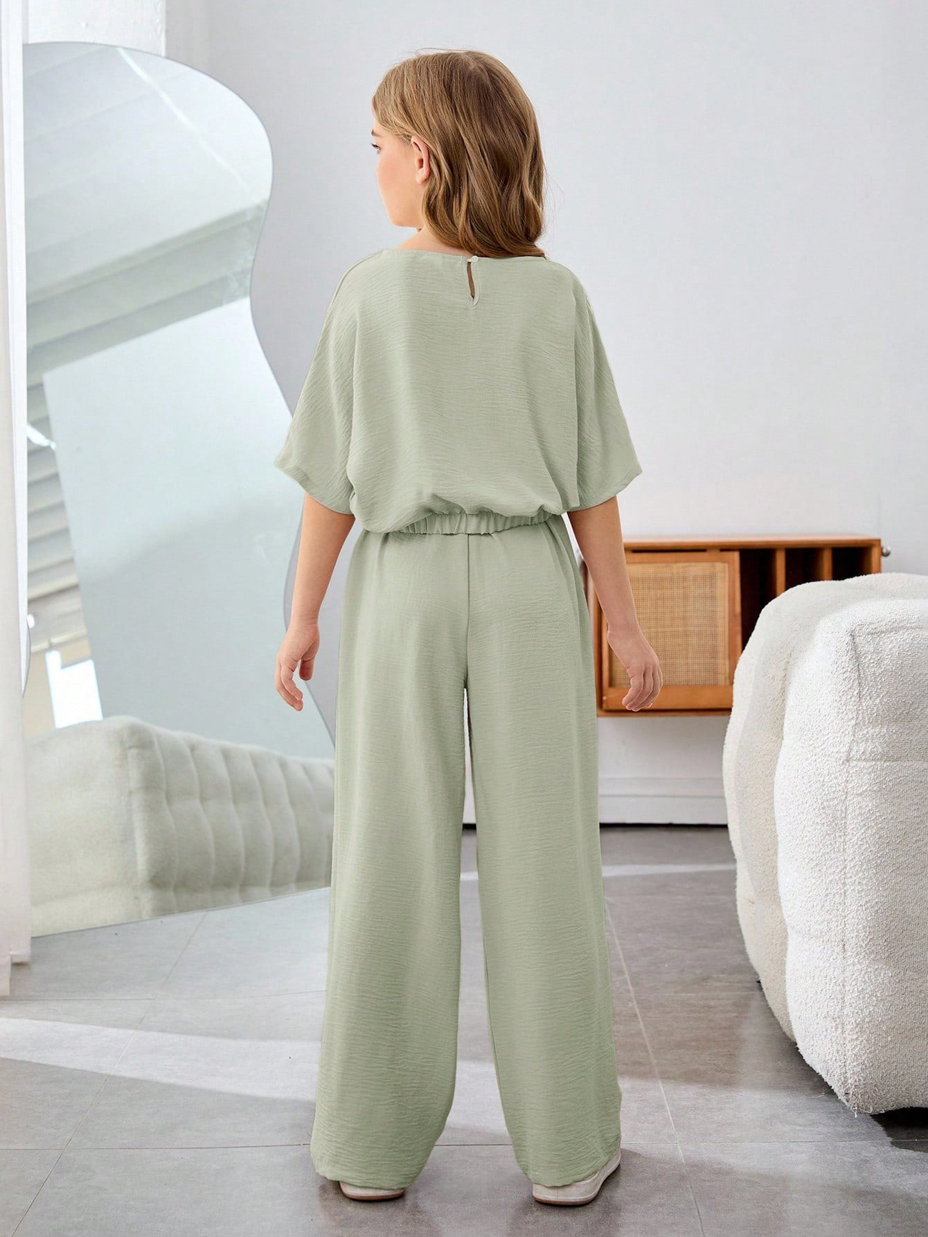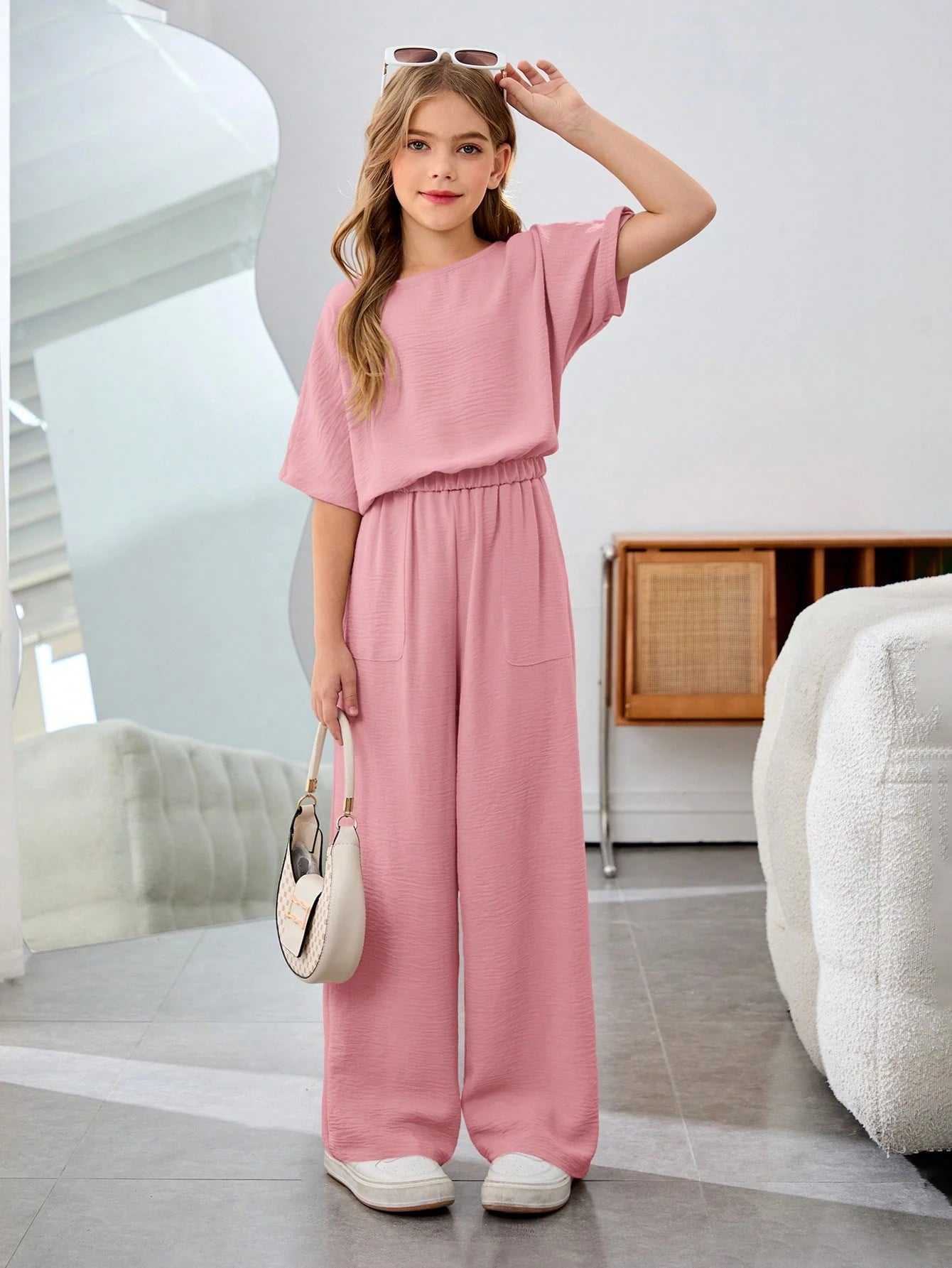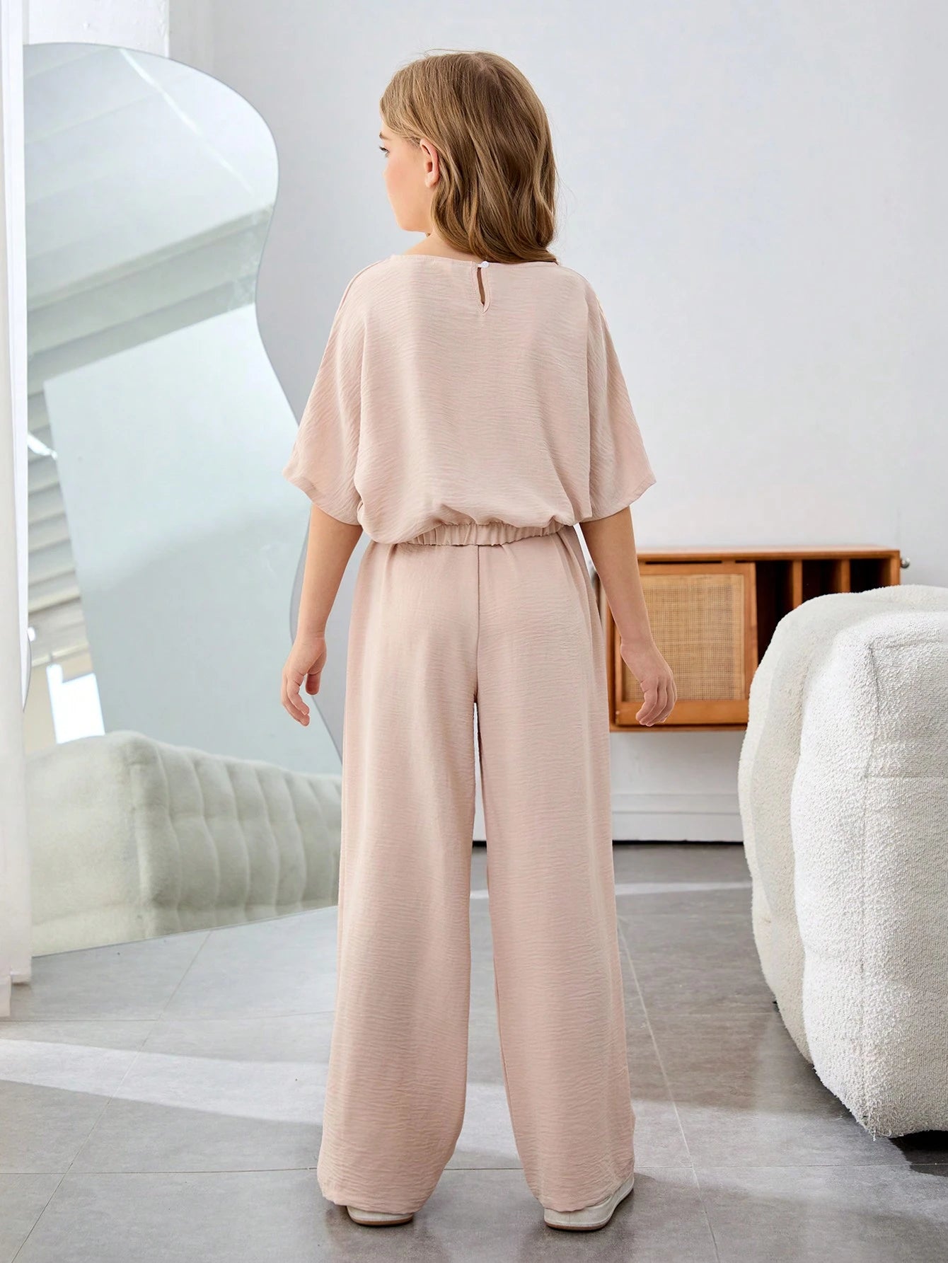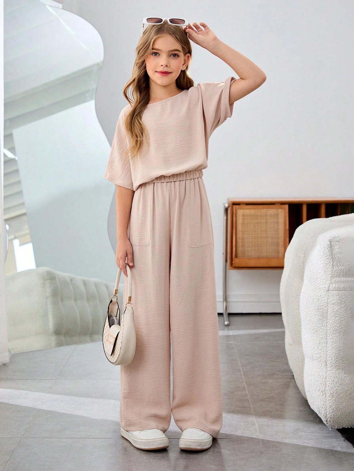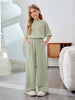 Tween Girl Vacation Casual Solid Color Round Neck Short Sleeve 2Pcs Set