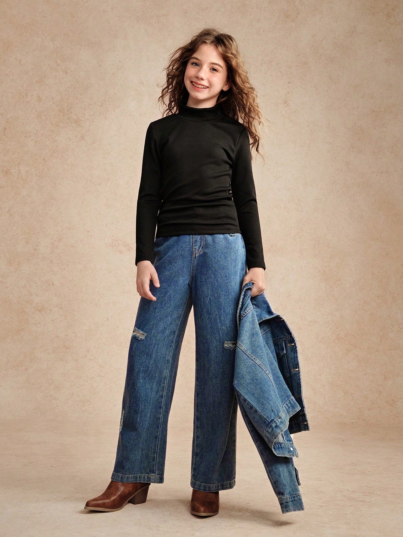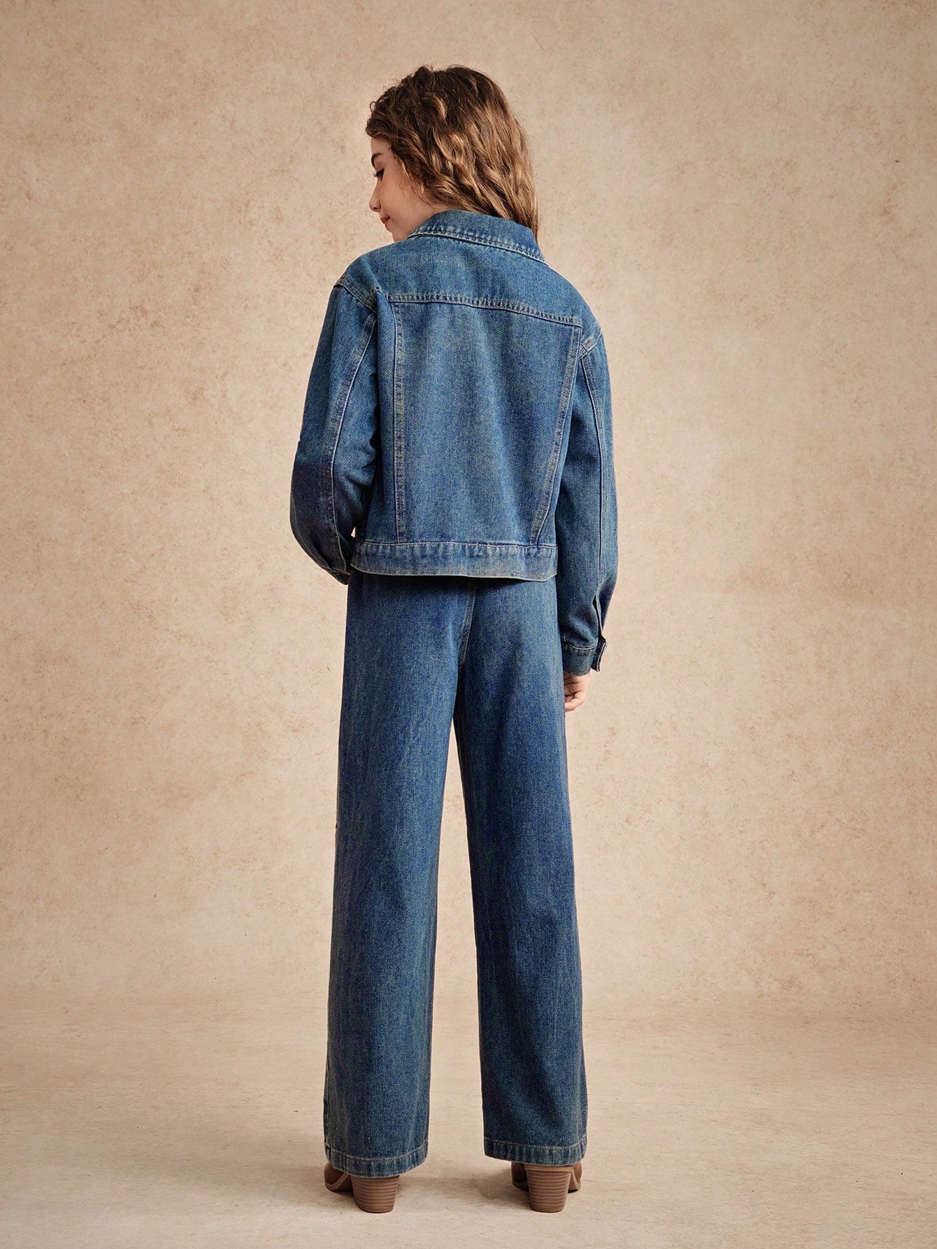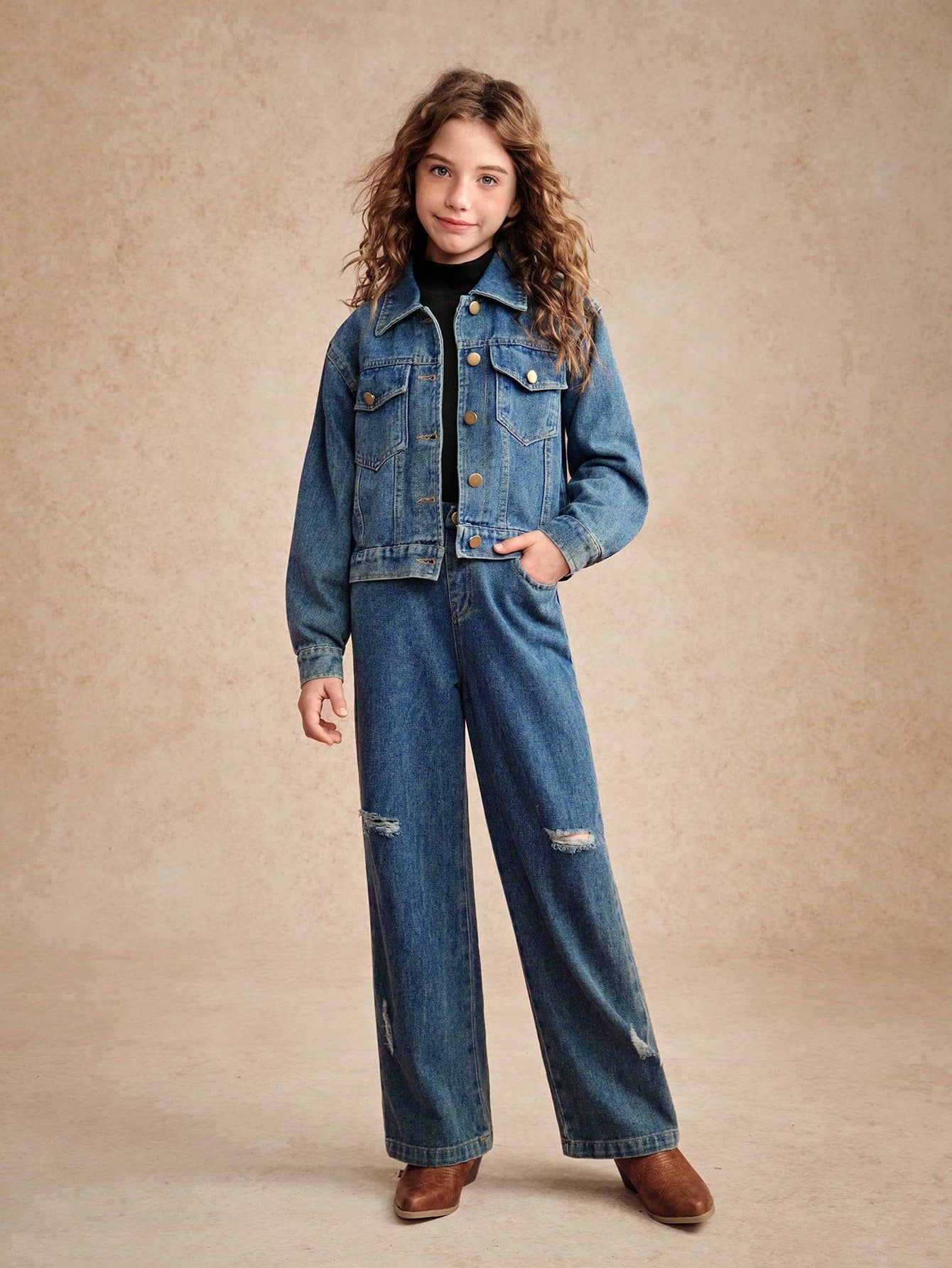 Tween Girls Casual Denim T-Shirt And Jeans Set