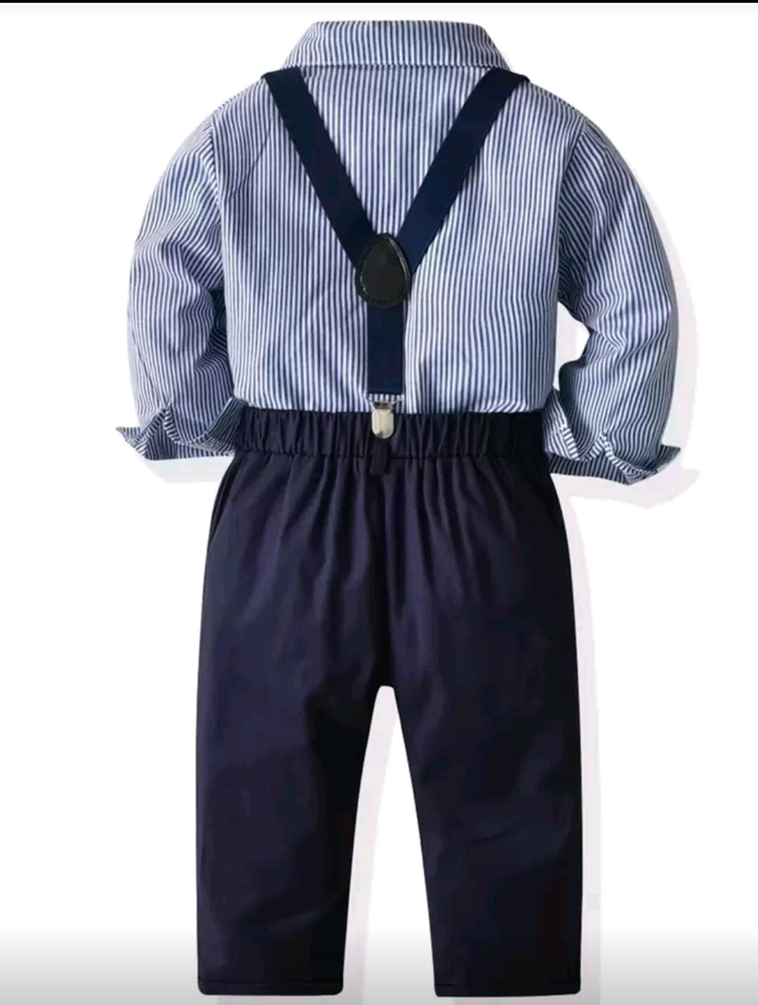Young Boy Bow Front Striped Shirt & Suspender Pants Chic Outfits